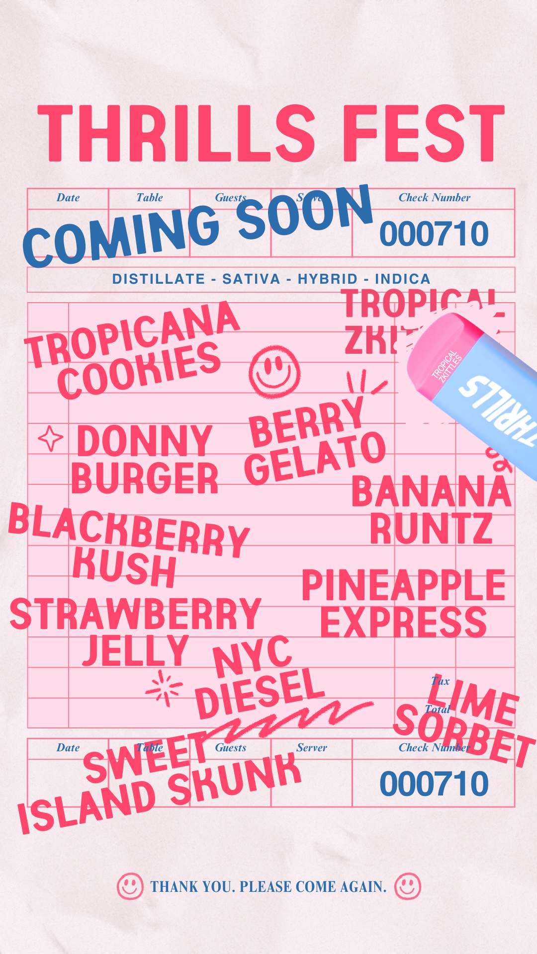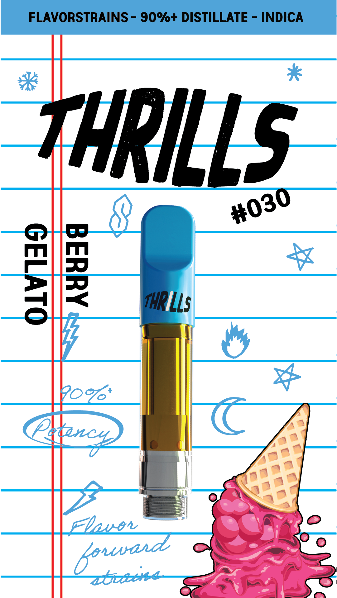 Thrills products are THRILLSSTRAIN-specific, meaning that each product has a profile that relates to a strain, and its features. Some THRILLSSTRAINS are Indica, some Sativa and others Hybrid.